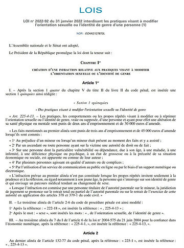 Loi du 31 janvier 2022 : interdisant les thérapies de conversion