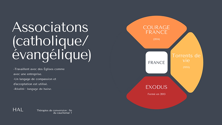 Présentation des principales associations pratiquant les thérapies de conversion.
